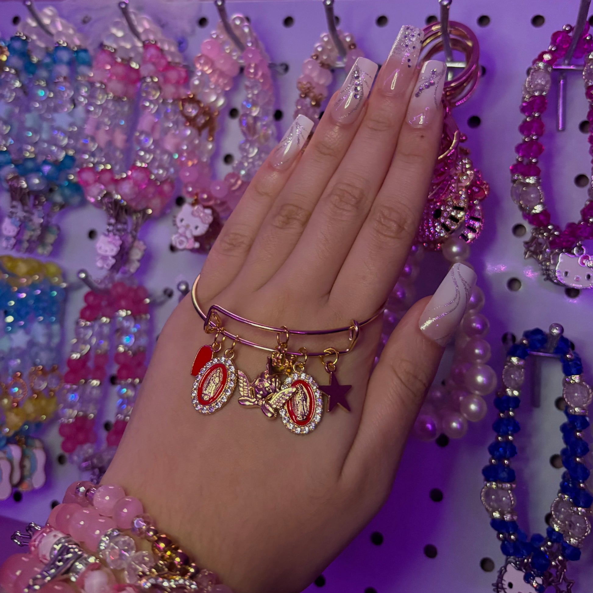Angel and Mary red Gold Bangle charm bracelet
