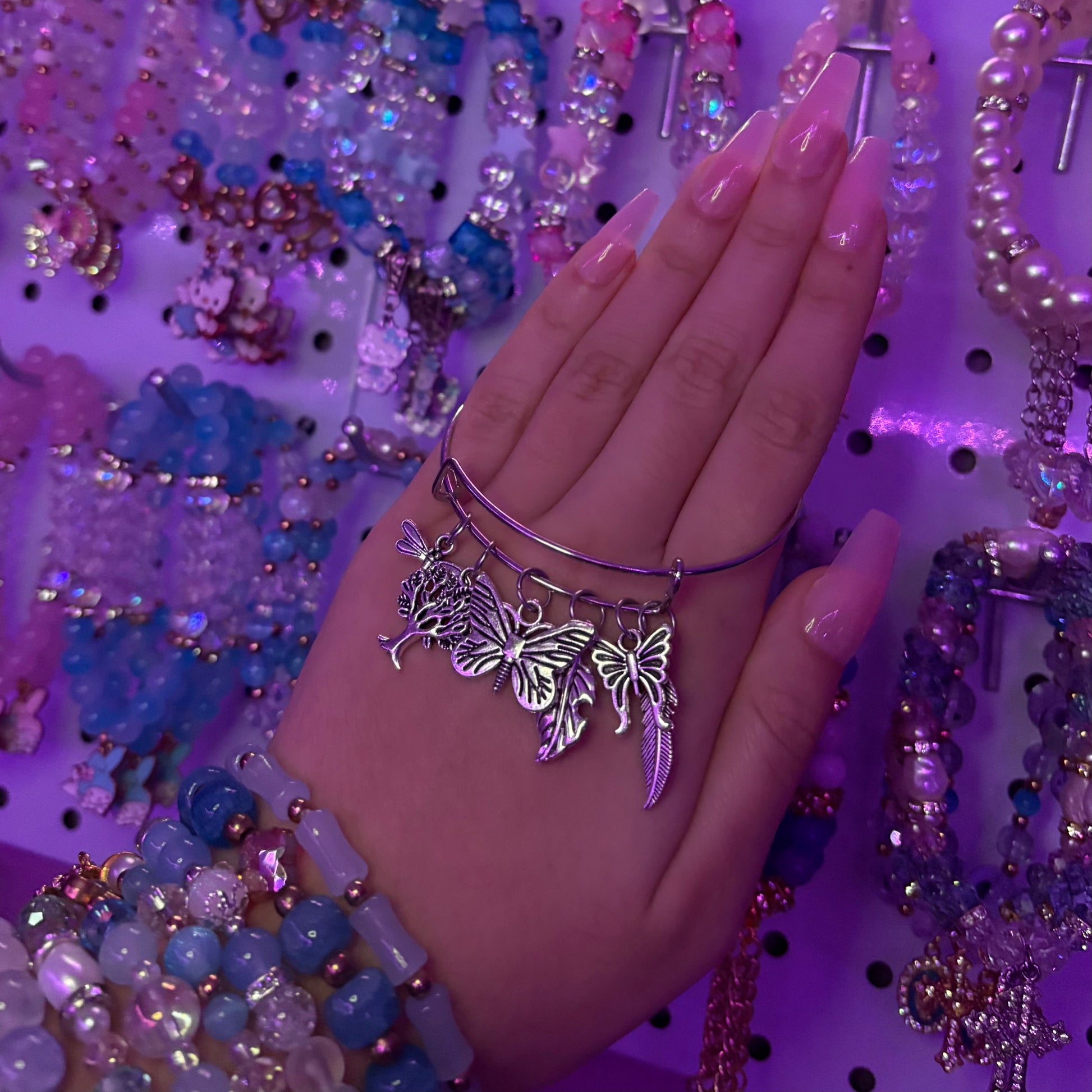 Silver bangle charm bracelet