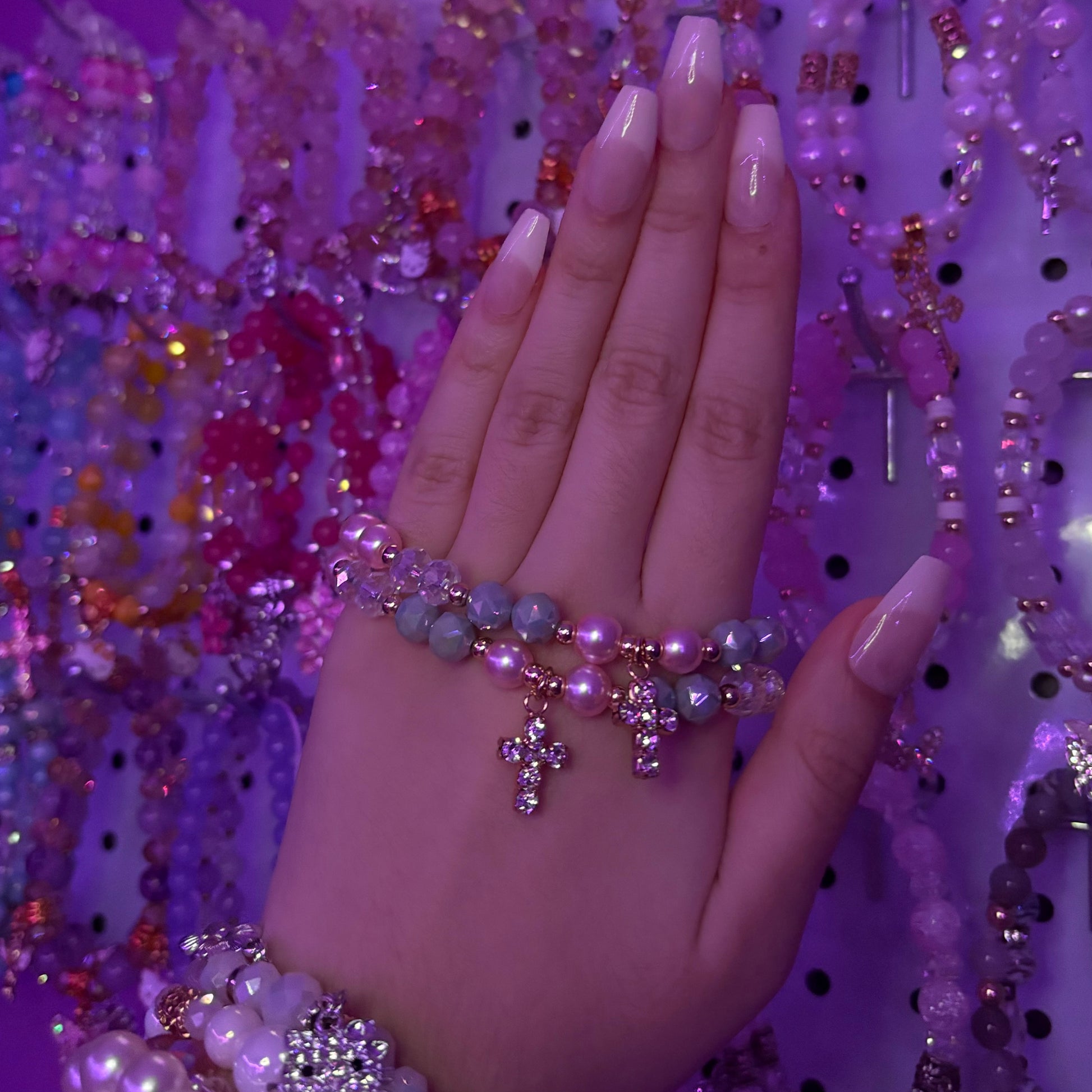 Pink & Grey Pearl Cross